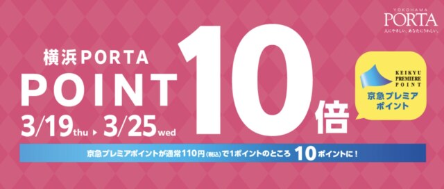 各キャンペーンの実施期間は3月が7日間、それ以外は5日間程度となり、期間中はポルタのポイント「京急プレミアポイント」がポイント10倍(約10%還元)にアップします。